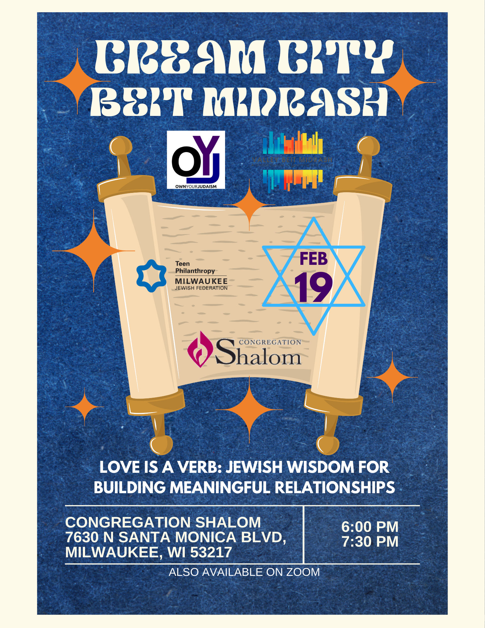 An engaging learning session co-facilitated by Moishe Steigmann – The Mindful Rabbi, and Rabbi Noah Chertkoff, Senior Rabbi of Congregation Shalom. This event is both in person and available via Zoom. For the in person attendees, the learning session will be from 6pm to 7pm Central Time, followed by a dessert reception. Register Here!