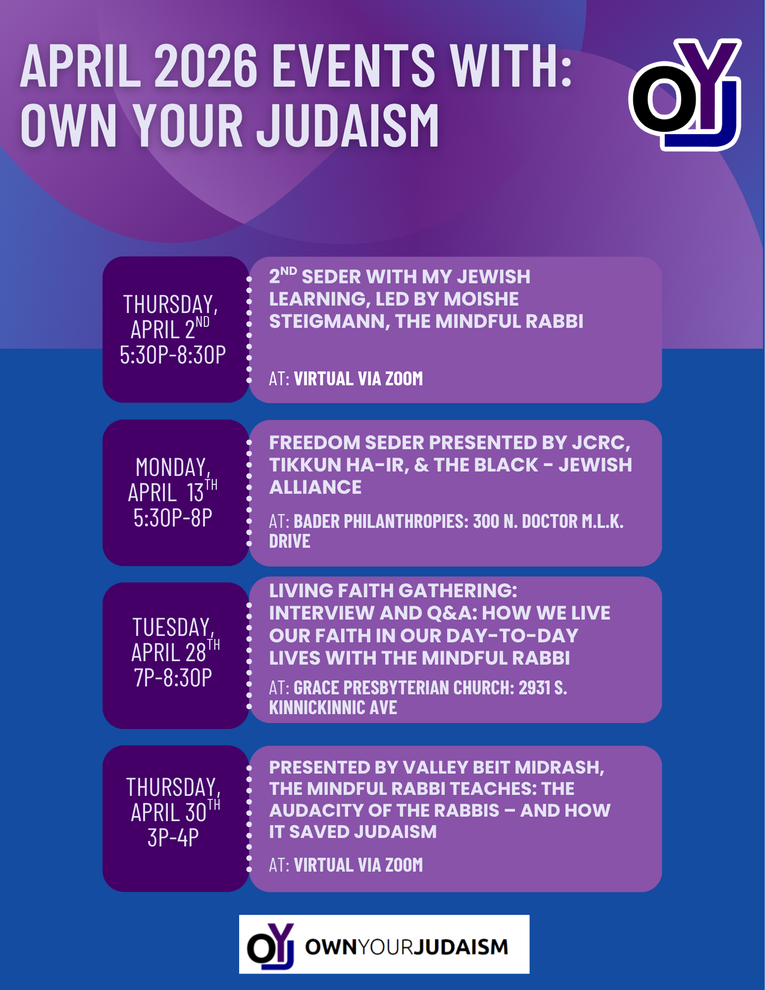OYJ is proud to present and co-present these upcoming events and programs in April 2026: